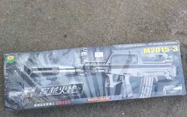 在一支包裝已打開的“穿越火線SVD模型槍”盒子內,還配有一包黃色“BB彈”。
