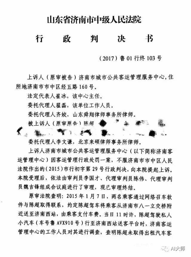 備受關注的中國“專車第一案”——陳超訴濟南市公共客運管理服務中心客運管理行政處罰一案,近日濟南市中級人民法院做出二審判決,駁回濟南客運管理中心上訴,維持原判,即撤銷濟南客運管理中心對“專車”司機陳超的行政處罰。