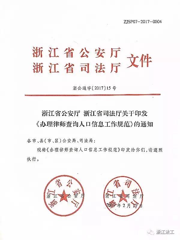 4月1日起,律師可到浙江查詢人口信息||律師查戶籍||福州律師推薦||浙江省公安廳 浙江省司法廳關于印發《辦理律師查詢人口信息工作規范》的通知