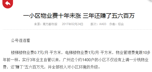 這個(gè)位于廣州市的小區(qū),有1400戶居民,這個(gè)小區(qū)不僅物業(yè)費(fèi)沒漲,還給小區(qū)居民掙錢了!