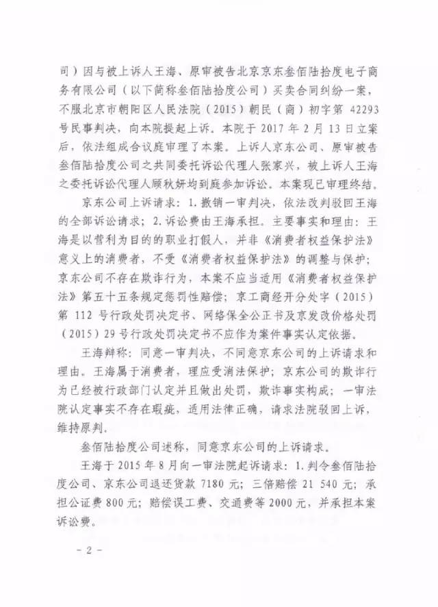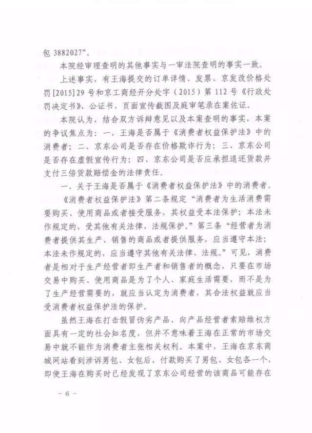 裁判要旨:對于職業打假人王海是否屬于消費者,其知假買假的行為是否應當予保護,法院認為,“雖然王海在打擊假冒偽劣產品、向產品經營者索賠維權方面具有一定的社會知名度,但并不意味著王海在正常的市場交易中就不能作為消費者主張相關權利。目前的法律法律并沒有對消費者的主觀購買動機作出限制性規定,也并沒有將知假買假的消費者排除在《消費者權益保護法》的保護范圍。”