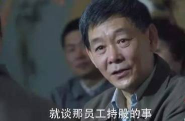如此一來,劇情反轉(zhuǎn),矛盾對立的雙方,開始互相理解,一片和諧。于是,編劇準(zhǔn)備了一個有意思的橋段:拿到了“安置費”的員工,不再糾結(jié)于“現(xiàn)鈔”多少,而是主動發(fā)起了二度創(chuàng)業(yè),打算成立一個“新大風(fēng)公司”,自立自強。在老檢察長陳巖石和工會主席鄭西坡的鼓動下,數(shù)百名員工興致勃勃地懷揣著萬把塊的“股本金”踏上了這趟共同創(chuàng)業(yè)、共同富裕的列車,股東的人數(shù)也從一開始的21人陡增至203人,出資從100萬元增加到了627萬元。電視上一邊是點鈔機,一邊是紅紅的股權(quán)證書,著實熱鬧。