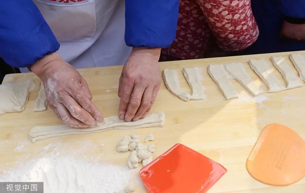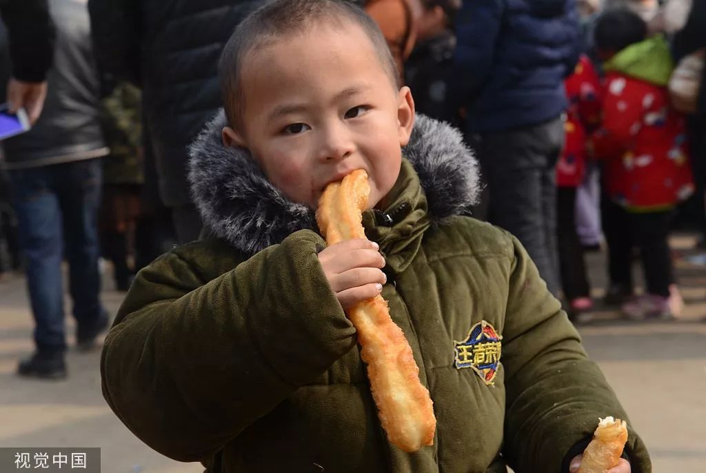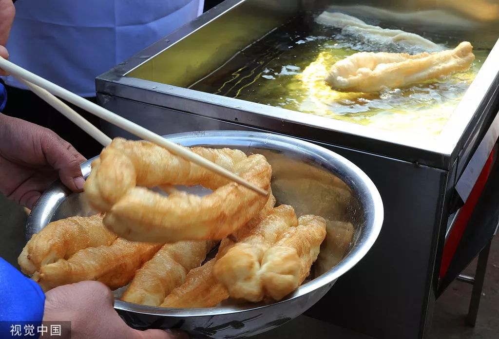 街頭制作和出售油條的小攤。圖片來自視覺中國