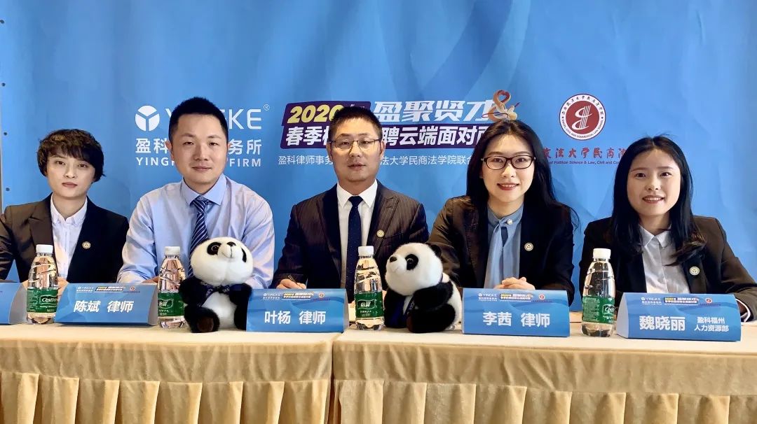 參與線上面試的五位面試官分別是盈科福州管委會委員、業務指導委員會主任葉楊律師,盈科泉州黨支部副書記、刑事法律事務部主任張倩雯律師,盈科福州涉外法律事務部主任李茜律師,盈科福州陳斌律師,盈科福州人力資源部魏曉麗。