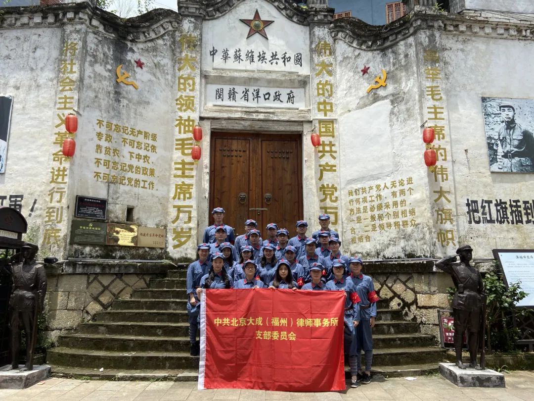迎七 · 一 | “追尋紅色足跡,重溫入黨誓詞”——大成福州開展主題黨日活動分類: 福州律師資訊2020年7月1日標簽: 福州交通事故律師福州刑事律師福州刑事辯護律師福州刑案律師福州刑辯律師福州勞動法律師福州商事律師福州家事律師福州市律師協會福州建設工程律師福州律師福州律師事務所福州律師網福州律師蔡思斌福州律所福州房產律師福州房屋律師福州知識產權律師 福州律師資訊大成福州 微信公號 大/成/福/州 黨/日/活/動 追尋紅色足跡重溫入黨誓詞 2020年6月28日,正值疫情散去之際,中共北京大成(福州)律師事務所支部組織事務所黨員、預備黨員和入黨積極分子赴順昌縣洋口鎮開展為期一天的主題黨日活動,“追尋紅色足跡,重溫入黨誓詞”,接受黨性和紅色傳統教育。 抵達洋口紅色小鎮 大家換上了“紅軍服”, 進行了“任命儀式”。 (上滑查看更多圖片↓↓↓) 參觀紅色洋口記憶館文史展館。 參觀蘇維埃政府舊址,黨員重溫了入黨誓詞。 參觀彭德懷辦公舊址。 參觀憲法博物館,走進憲法,感受憲法, 學習了憲法的誕生和發展, 讓我們更好地弘揚憲法精神、 維護憲法權威。 大成福州黨支部還聯合福州順昌商會黨支部等, 向順昌縣建西鎮南山村黨支部 捐贈辦公桌椅等辦公用品, 用行動支持鄉村振興。 通過這次豐富多彩的活動,我所黨員、預備黨員和入黨積極分子深入學習貫徹了習近平總書記關于傳承紅色基因、發揚革命精神的重要論述,激勵了我所黨員銘記光榮黨史,堅定政治信仰,永葆黨心初心,勇擔時代使命。 分享此文文章導航上一個上一篇文章許明同志獲評兩新領域最美“黨員志愿者”下一個下一篇文章偷走他人人生的高考頂替惡魔,刑法如何制裁,你猜猜?。?#8211;福州律師蔡思斌原創相關文章聚焦財稅與社保合規管理,福州律協專題培訓報名開啟,速來報名!2025年10月24日福州律協舉辦境內外資產保護傳承信托實務交流活動2025年10月24日深化良性互動 強化職責使命——福州市律師協會赴倉山法院參加訴訟服務工作交流座談會2025年10月21日我玫瑰,我鏗鏘——福建省女律師菁英人才集訓營(第六期)圓滿收官2025年10月21日山海協作 共筑行業自律新高地——慶陽市律師協會到訪福州市律師協會座談交流2025年10月17日大成福州律師受邀為福建空管分局開展違法違紀警示教育的法治講座2025年10月17日