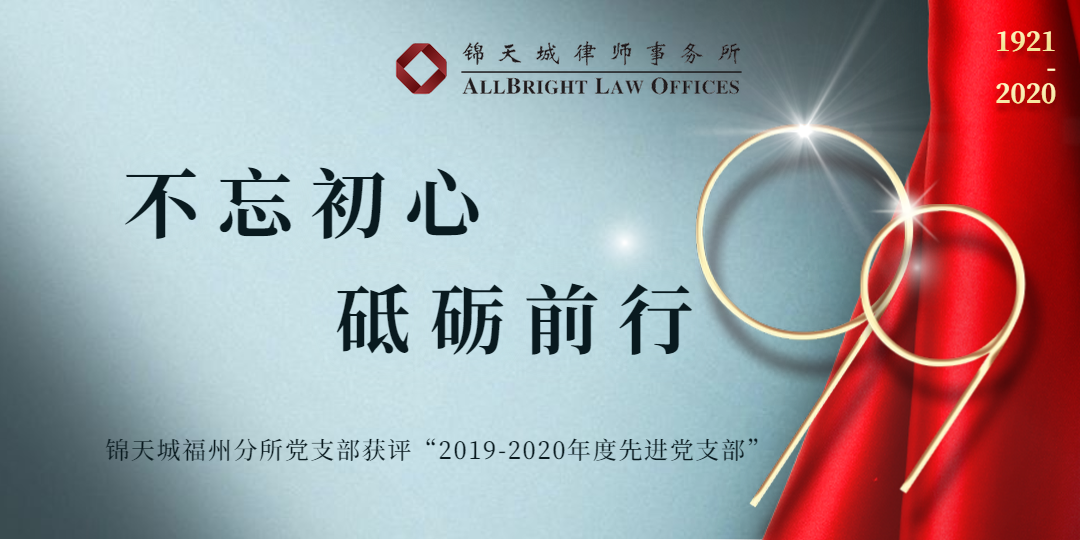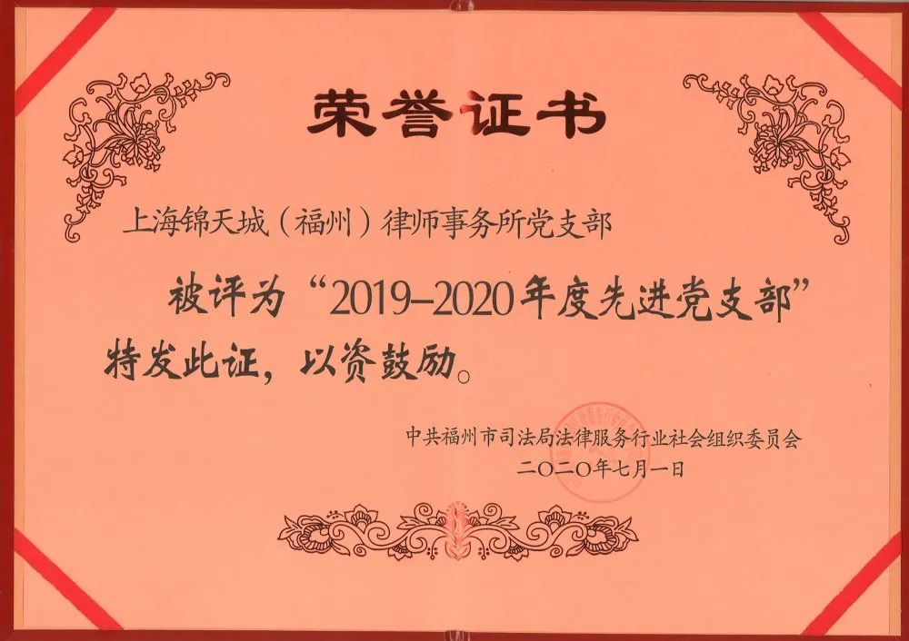 錦福動態 | 錦天城福州分所黨支部獲評“2019-2020年度先進黨支部”