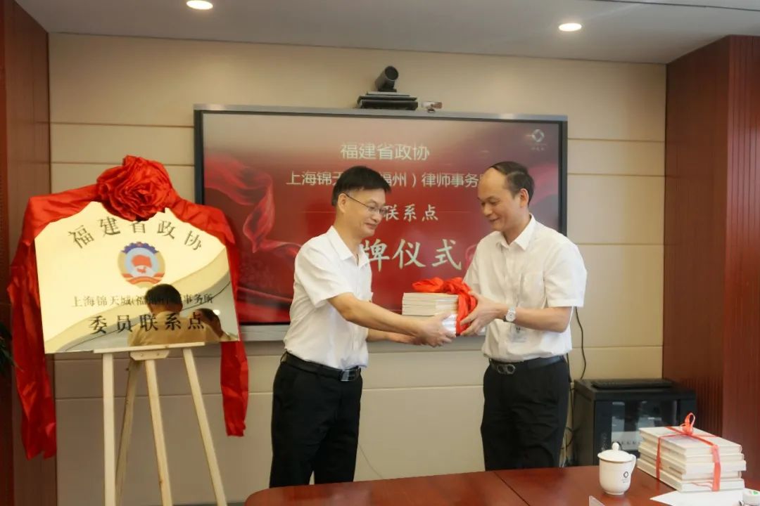 7月29日,省政協(xié)在上海錦天城(福州)律師事務(wù)所舉行委員聯(lián)系點(diǎn)揭牌儀式。