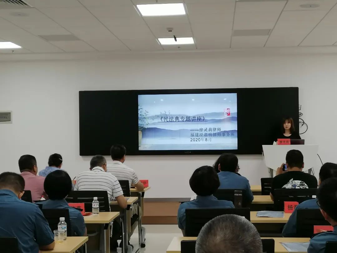 為響應習近平總書記在中央政治局第二十次集體學習對民法典學習宣傳、貫徹實施提出的要求,受廈門港口管理局漳州協調中心的邀請,2020年8月13日下午,我所廖靈莉律師在漳州市東山縣谷文昌干部學院,為廈門港口管理局漳州協調中心職工代表、干部進行民法典的學習宣導、宣傳實施活動。