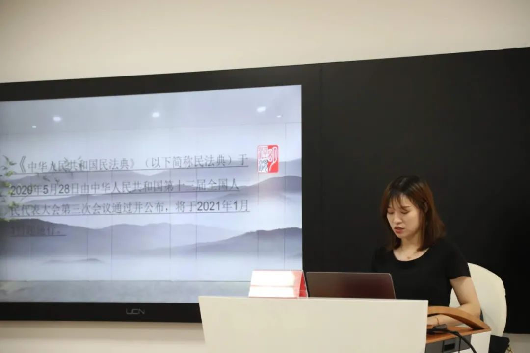 活動分為兩部分進行,廖靈莉律師首先介紹了民法典誕生的背景、歷程以及意義。然后廖靈莉律師結合了社會生活中最經常涉及、容易起糾紛、民眾普遍較關注的問題,總結了七大新點和亮點,向大家介紹了民法典實施后的具體規定。倡導相關干部、職工積極學習民法典的相關知識,從而提高法律意識、更新執法方式、防范法律風險。