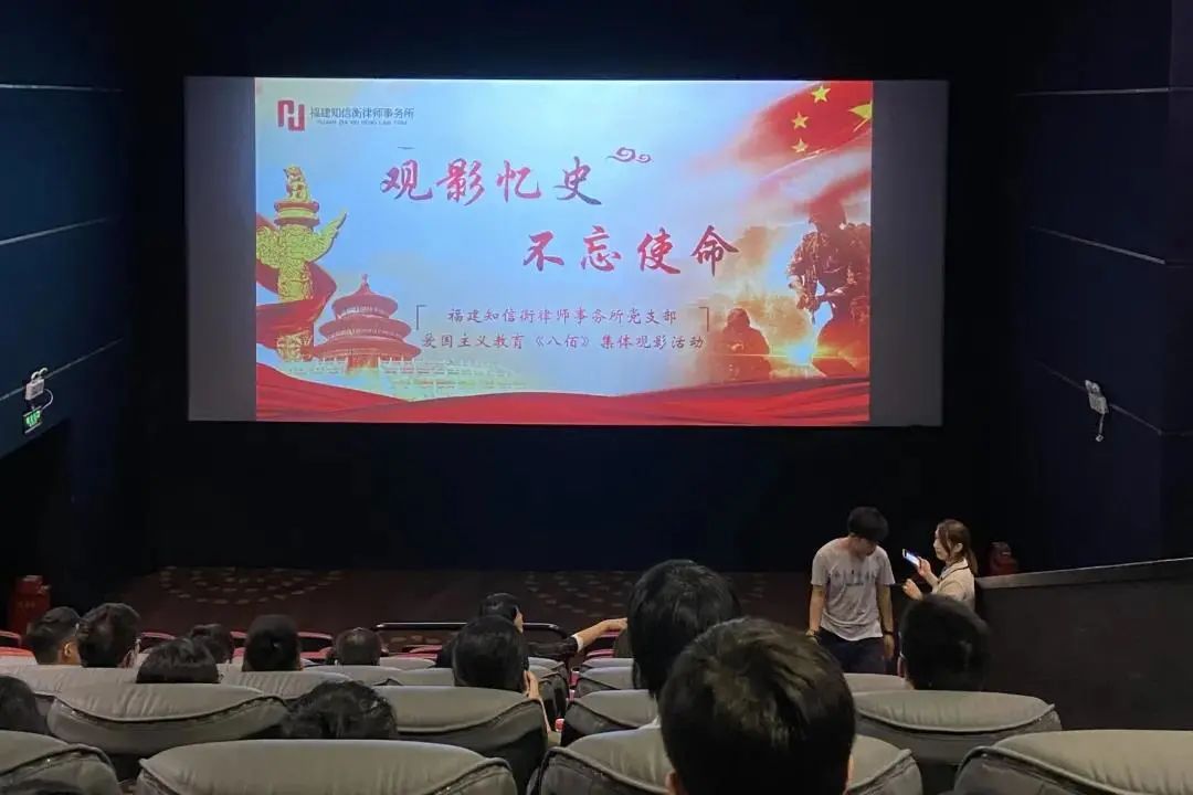 ?為紀念抗戰勝利75周年,激發黨員及所內律師愛國主義熱情,8月27日,福建知信衡律師事務所黨支部開展“觀影憶史,不忘使命”黨日活動,以包場的形式組織所內黨員和律師觀看抗戰題材電影《八佰》。