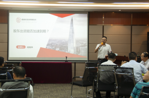 何青華律師圍繞《股東出資能否加速到期》主題做了六個(gè)部分的分享,他從一個(gè)案例導(dǎo)入,講述加速到期制度的前世今生及法律依據(jù)、進(jìn)而介紹公司法分論壇的幾位作者的觀點(diǎn)、提出三個(gè)加速到期制度的未決問題、最后提出解決路徑。