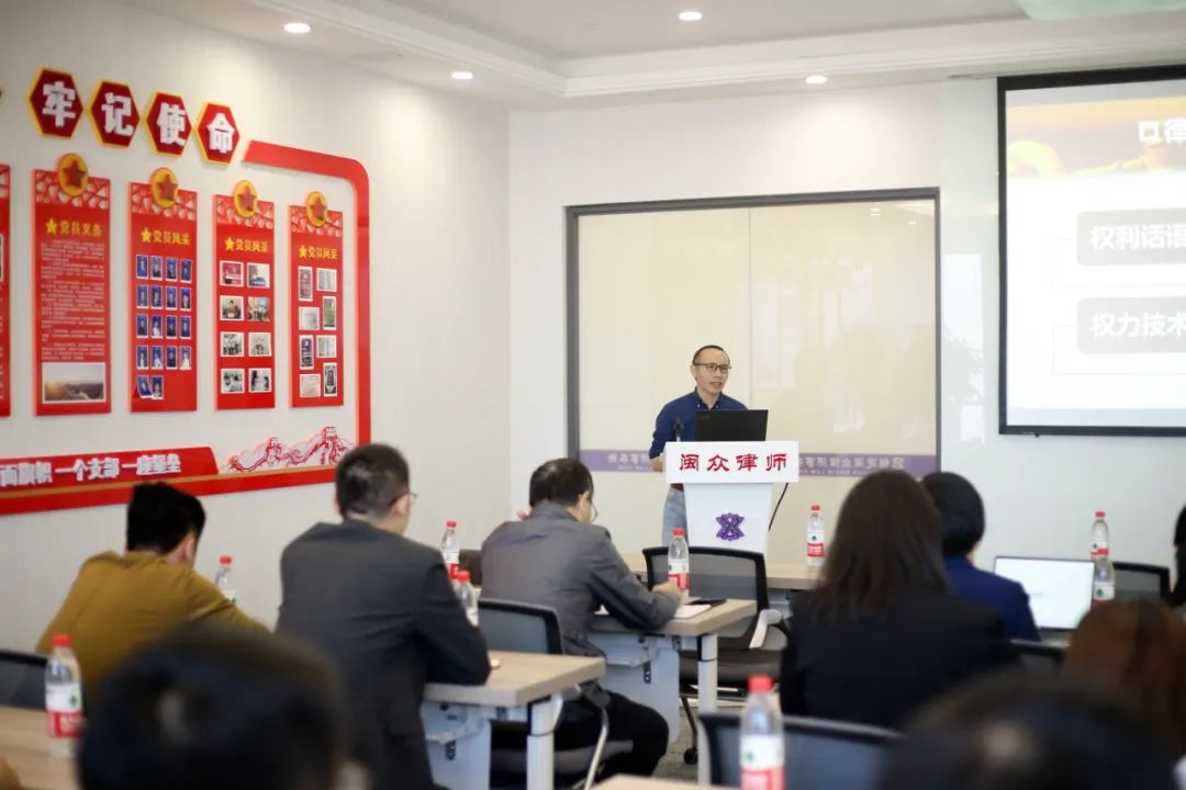 ↑福州市律師協會刑事法律專業委員會副主任、閩眾刑辯團隊負責人鄧曉東律師致歡迎辭。