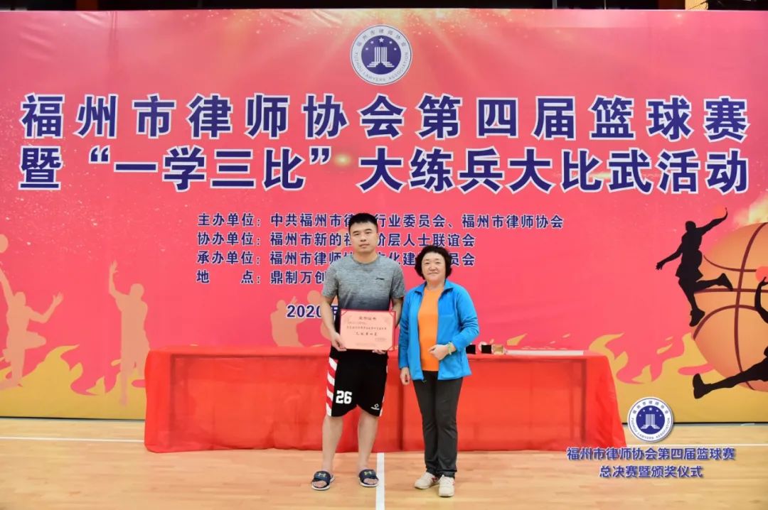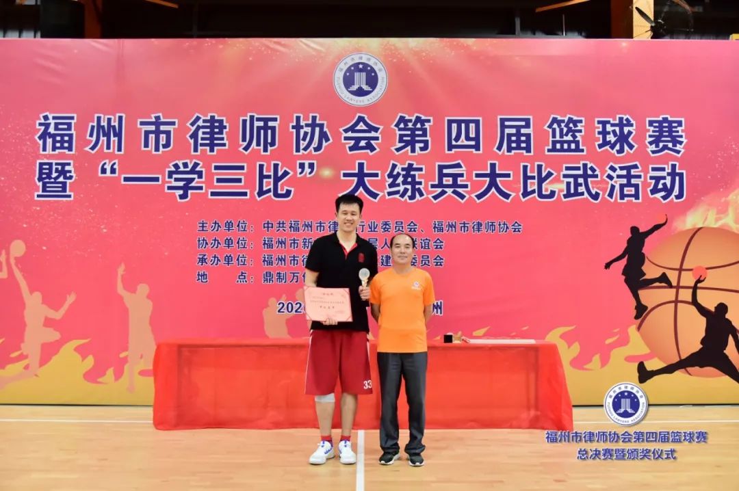 頒獎(jiǎng)結(jié)束后,黨委書記崗永紅致閉幕詞,她代表中共福州市律師行業(yè)黨委向所有積極參賽的律所和運(yùn)動(dòng)員,向付出辛勤勞動(dòng)的全體裁判員和工作人員表示衷心的感謝,對(duì)獲獎(jiǎng)的代表隊(duì)和運(yùn)動(dòng)員表示熱烈的祝賀。她指出,本屆籃球賽是福州市律師行業(yè)黨委組織的“一學(xué)三比”大練兵大比武活動(dòng)之一,通過舉辦籃球賽,豐富了律師的業(yè)余文化生活,促進(jìn)了行業(yè)交流,營造了堅(jiān)韌不拔、健康向上的行業(yè)文化氛圍,增強(qiáng)了律師行業(yè)的凝聚力和向心力,對(duì)提升律師協(xié)會(huì)作為律師之家的建設(shè)水平,以及持續(xù)推動(dòng)我市律師行業(yè)健康發(fā)展起到了重要和積極的作用。她表示,通過比賽,福州律師們充分展現(xiàn)了敢打敢拼、奮勇向前的精神風(fēng)貌,接受了高強(qiáng)度的身體素質(zhì)、競(jìng)技才能的綜合考驗(yàn)。她希望,福州律師們能夠?qū)⒈荣愔姓宫F(xiàn)的精誠團(tuán)結(jié)、頑強(qiáng)拼搏、勇攀高峰、催人奮進(jìn)的比賽精神轉(zhuǎn)化為強(qiáng)大的工作動(dòng)力,進(jìn)一步提高政治站位,把智慧和力量凝聚到律師執(zhí)業(yè)活動(dòng)中,努力為服務(wù)經(jīng)濟(jì)社會(huì)發(fā)展、保障人民群眾合法權(quán)益、維護(hù)社會(huì)公平正義、推進(jìn)社會(huì)主義民主法治建設(shè)作出新貢獻(xiàn)!最后,在陣陣掌聲和歡呼聲中,黨委書記崗永紅宣布福州市律師協(xié)會(huì)第四屆律師籃球賽圓滿閉幕!
