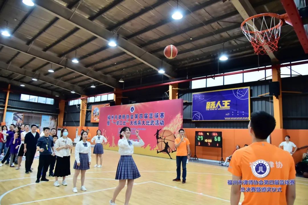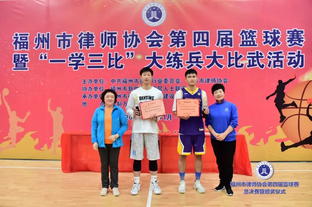 市司法局調(diào)研員、市律師行業(yè)黨委書記崗永紅,市司法局律師工作處處長、市律師行業(yè)黨委副書記王惠欽,福州市委統(tǒng)戰(zhàn)部新知處負(fù)責(zé)人周澤建,市律師協(xié)會(huì)會(huì)長、市律師行業(yè)黨委副書記許明,市律師協(xié)會(huì)副會(huì)長吳玉姜、陳立新,市律師協(xié)會(huì)常務(wù)理事張子輝、童建炫、丁茂福、陳恒峰,市律師協(xié)會(huì)秘書長陳霞英,市律師協(xié)會(huì)監(jiān)事蘭永華等領(lǐng)導(dǎo)和嘉賓到場(chǎng)觀看了比賽。籃球賽甲級(jí)和乙級(jí)決賽入場(chǎng)式及頒獎(jiǎng)典禮由文化建設(shè)委員會(huì)副主任丁文輝主持。